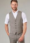 64% Polyester, 34% Viscose, 2% Lycra. Tailored fit, 5 button front, 2 welt pockets, part lining back with adjuster. Centre back length at size M = 62cm