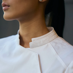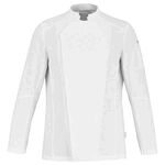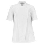 Women's jacket featuring a breathable fabric blend and mesh panels. The statement asymmetric front with hidden fastenings gives a functional design a modern and subtle twist. The sportswear-style elasticated centre back provides a comfortable and flexible fit, which is exactly what busy chefs need as they move around the kitchen.